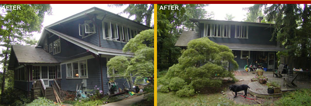 The original Arts & Crafts style house had a small dormer in the rear.. With the construction of a new large shed dormer across the width of the house, we created a new master suite.